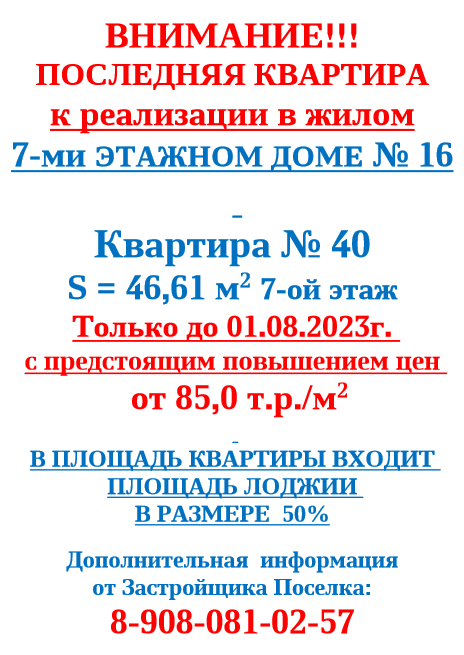 Последняя квартира в 7-ми этажном жилом доме по состоянию на г.: